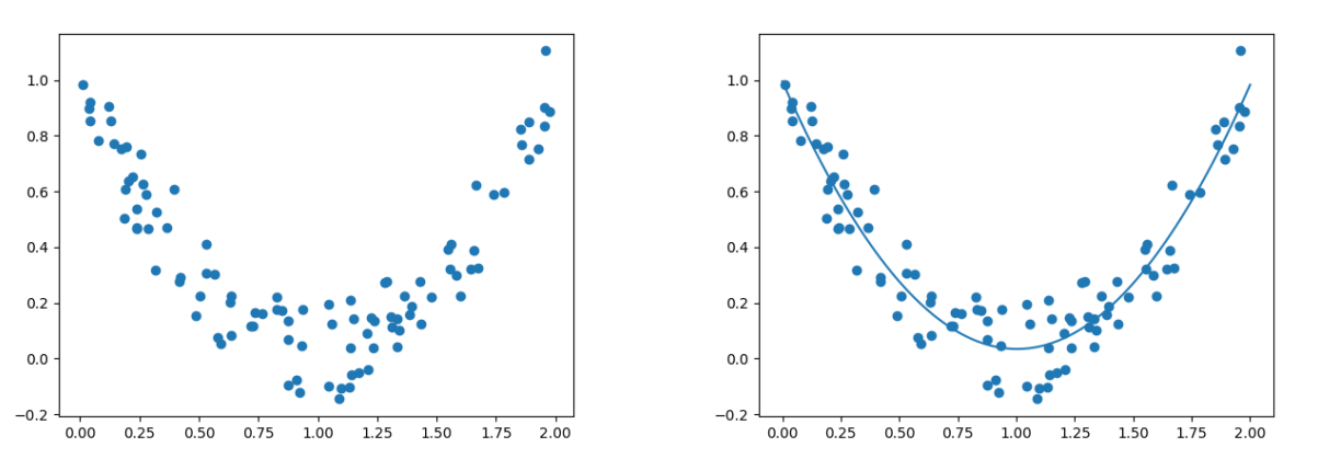 y = X**2 - 2 * X + 1 + np.random.normal(0, 0.1, (m,1))