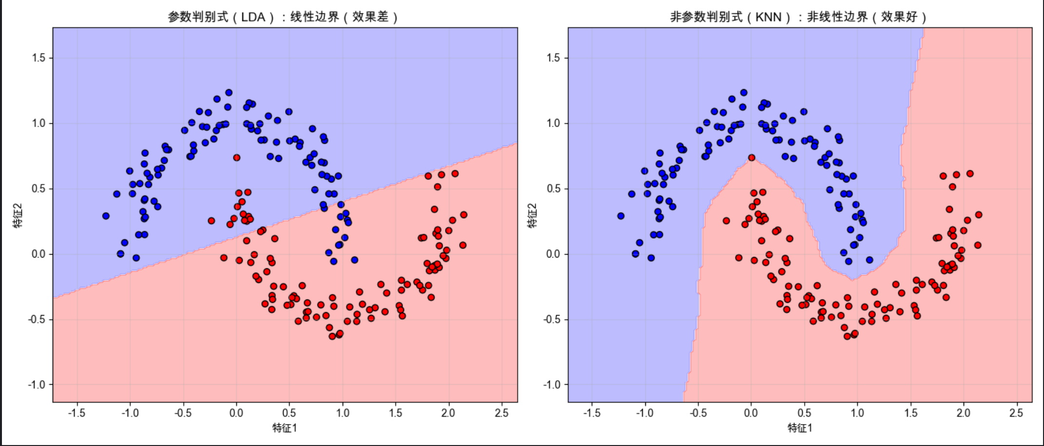 [代码:参数判别式(LDA)vs 非参数判别式(KNN)对比](#代码:参数判别式(LDA)vs 非参数判别式(KNN)对比)