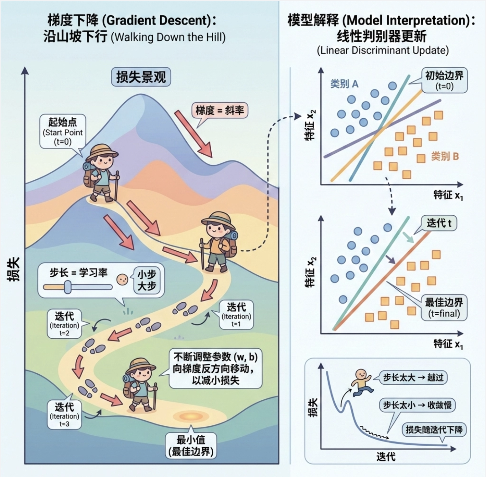 1.核心思想 :线性判别式通过直线 / 超平面分割不同类别,核心是找到最优的决策边界;