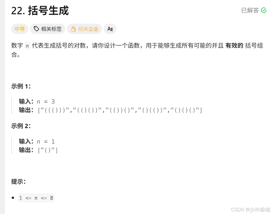 - [四. 力扣 [22. 括号生成](https://leetcode.cn/problems/generate-parentheses/)](#四. 力扣 22. 括号生成)