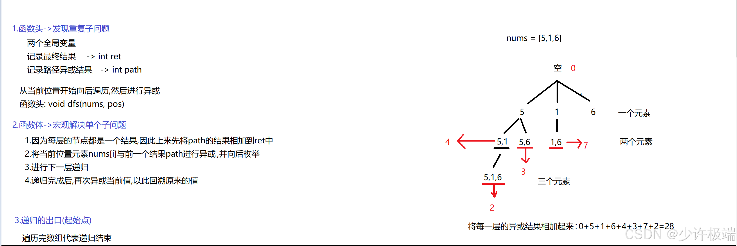 - [一. 力扣 [1863. 找出所有子集的异或总和再求和](https://leetcode.cn/problems/sum-of-all-subset-xor-totals/description/)](#一. 力扣 1863. 找出所有子集的异或总和再求和)