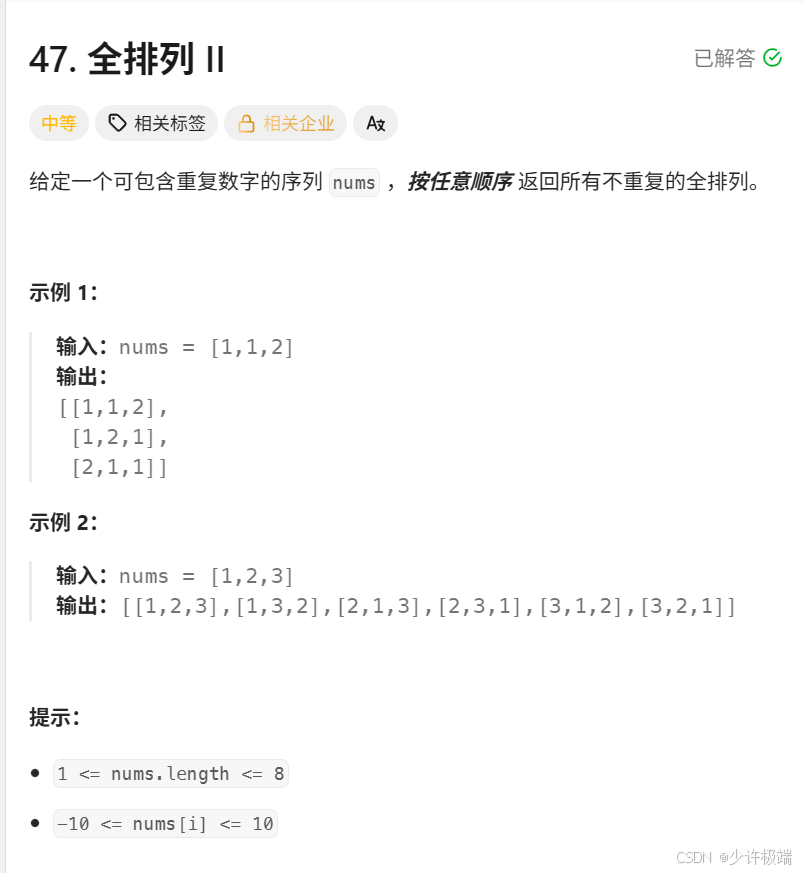 - [二. 力扣 [47. 全排列 II](https://leetcode.cn/problems/permutations-ii/description/)](#二. 力扣 47. 全排列 II)