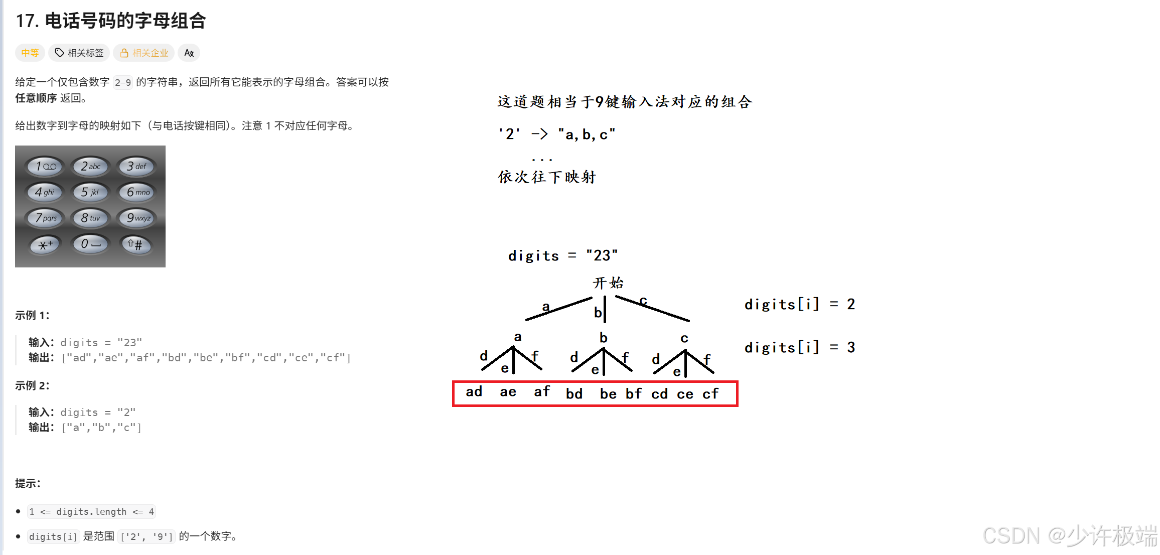 - [三. 力扣 [17. 电话号码的字母组合](https://leetcode.cn/problems/letter-combinations-of-a-phone-number/description/)](#三. 力扣 17. 电话号码的字母组合)