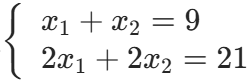 第二行表示0x1+0x2=3,显然矛盾,因此方程组无解。