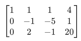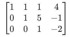 此时矩阵已成为阶梯型矩阵 ,可通过回代法求解:从最后一行z=−2代入上一行,依次求出y、x。
