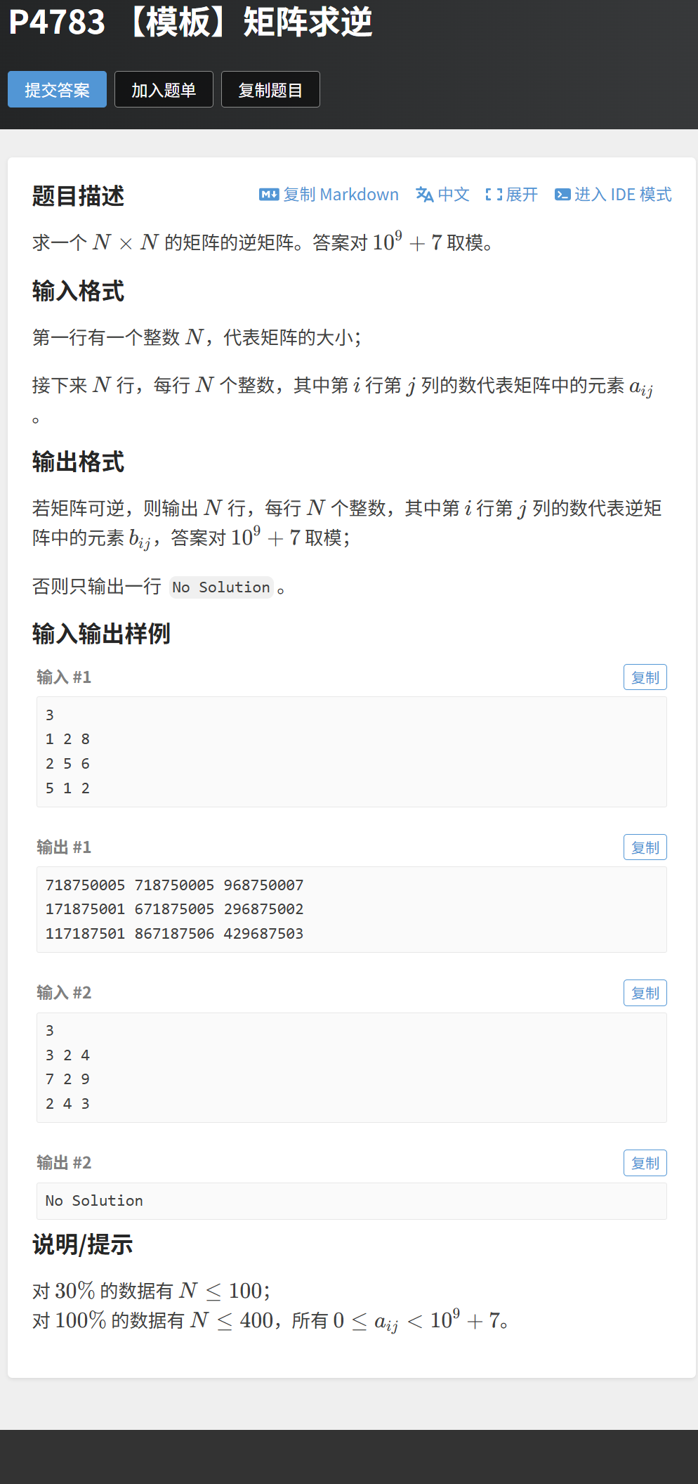 7.1 进阶应用 1:矩阵求逆(洛谷 P4783)