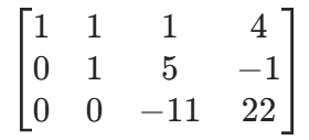 第三行除以 - 11(主元化为 1):r3÷(−11)