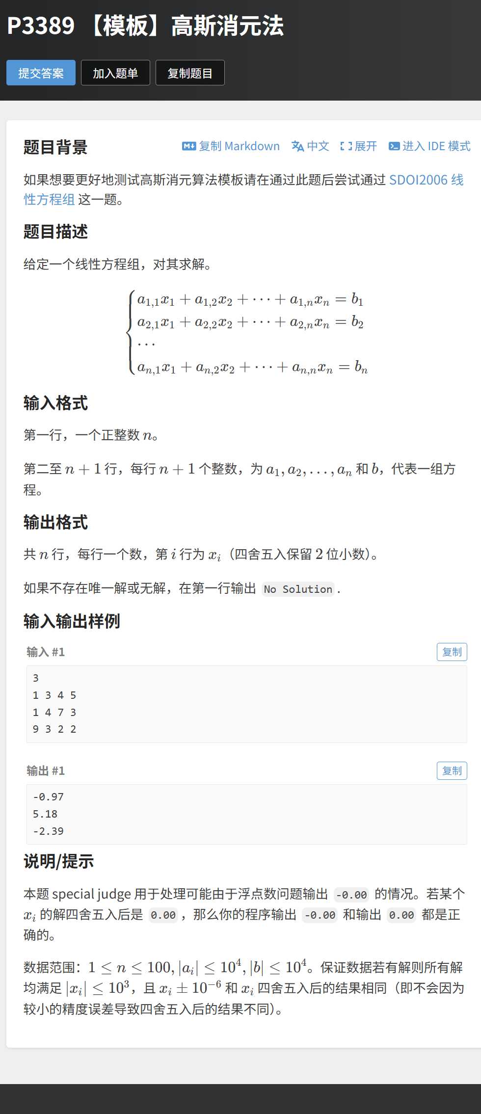五、洛谷真题实战 1:基础高斯消元(P3389)