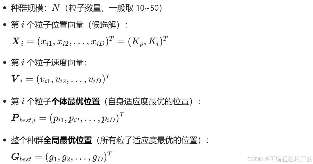 粒子群优化(PSO)作为群体智能优化算法,无需目标函数连续可导、无需梯度信息,具备全局搜索能力强、收敛速度较快、参数少、易编程实现等特点,可在线/离线优化PI控制器的比例系数Kp与积分系数Ki,使控制系统在多目标约束(超调量、调节时间、稳态误差、抗扰性)下达到最优动态/稳态性能,实现无刷直流电机的最优调速控制。