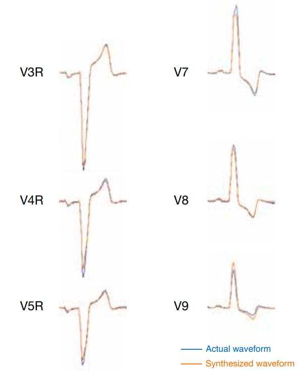 NK的synECi18算法简单说就是从标准 12 导联心电图数据中持续测量瞬时心电矢量,并从中合成右侧导联(V3R、V4R、V5R)和后方导联(V7、V8、V9)的心电图。