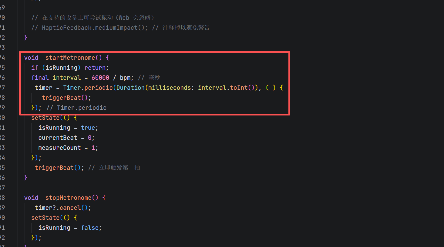final interval = 60000 / bpm; // 毫秒