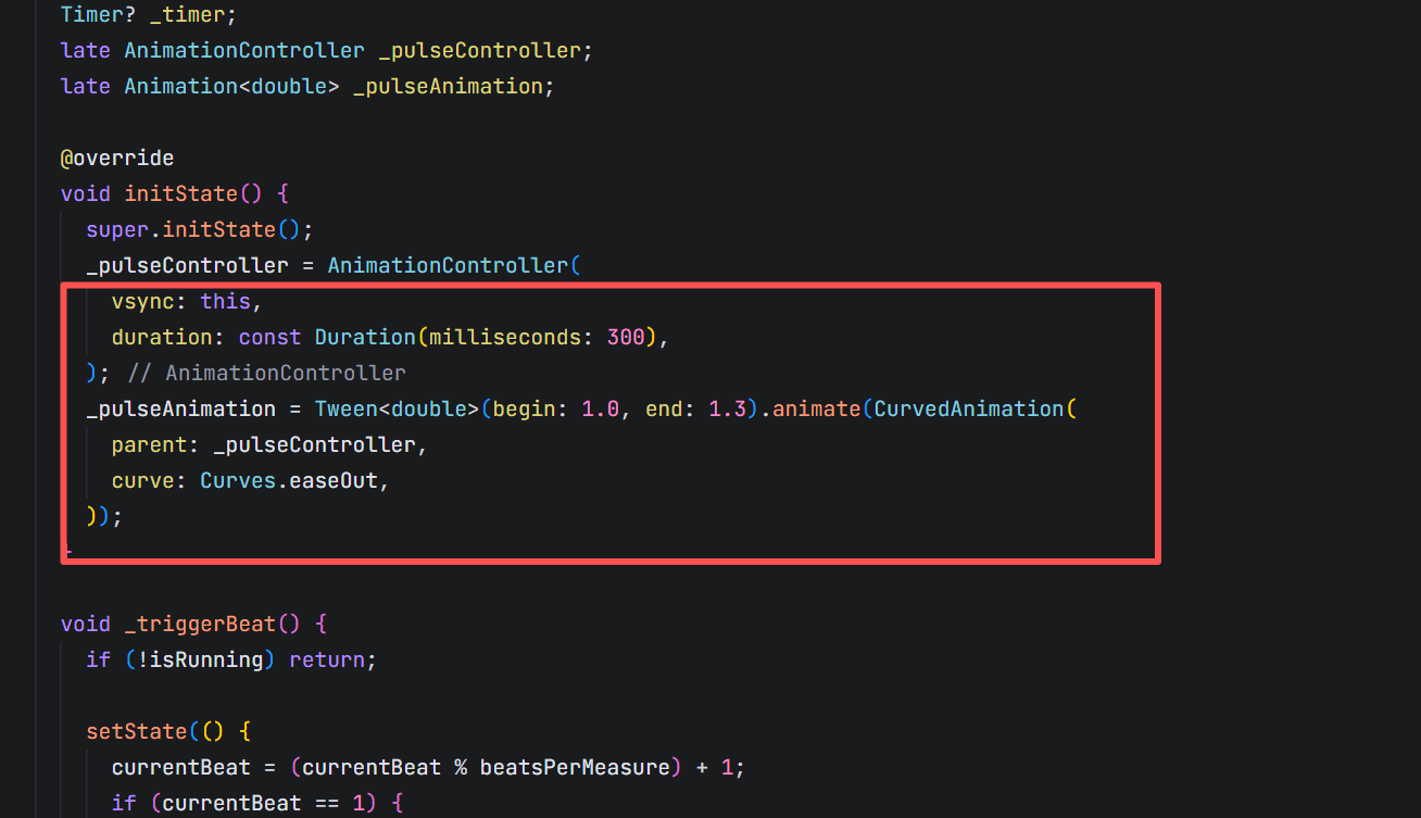 _pulseAnimation = Tween<double>(begin: 1.0, end: 1.3).animate(