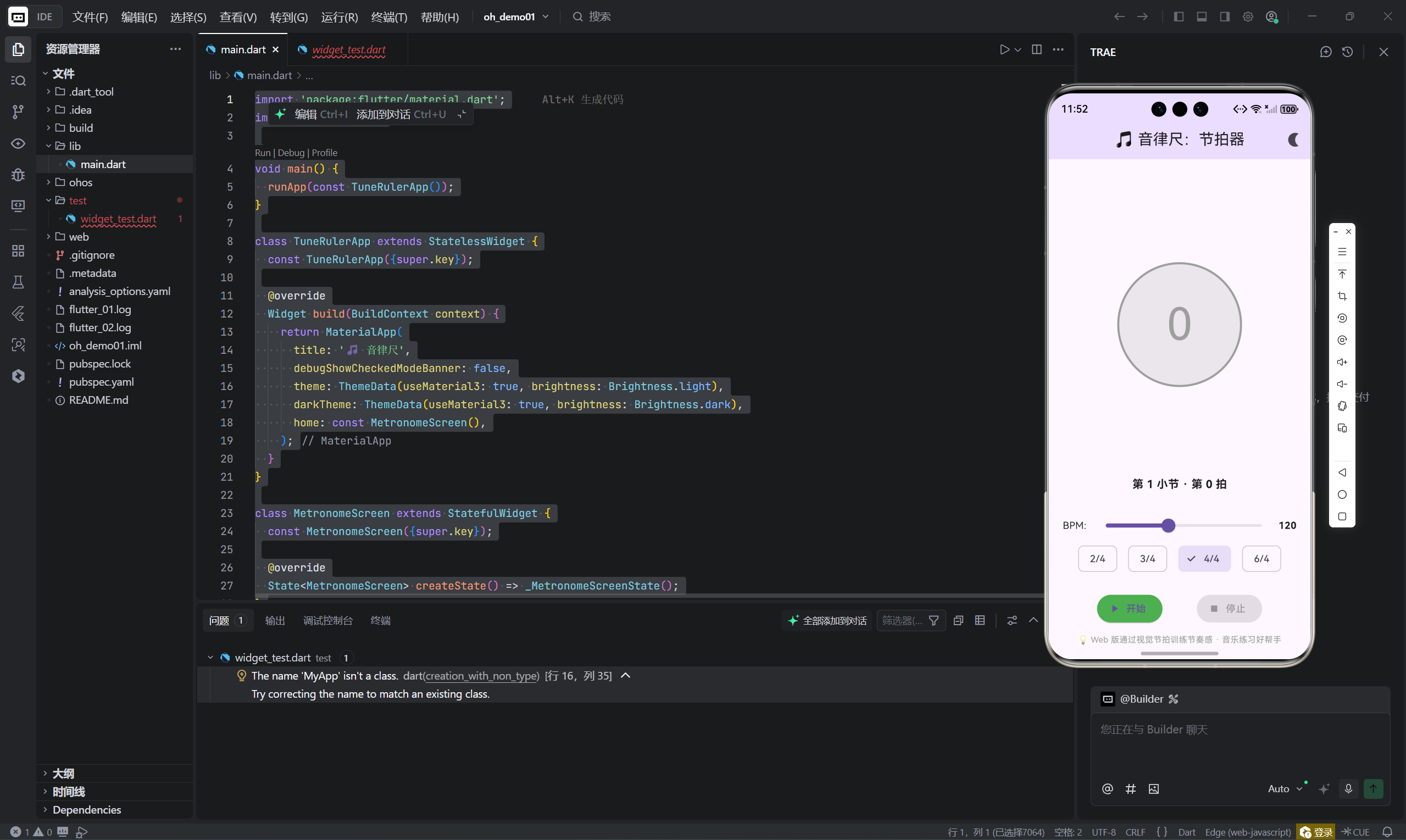 它没有追求"全平台音频同步"的复杂方案,而是在 Web 的限制下,用纯粹的视觉语言,重新定义了节拍器的可能性。而 Flutter 的跨平台能力与声明式 UI,让这一理念得以优雅落地。