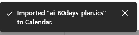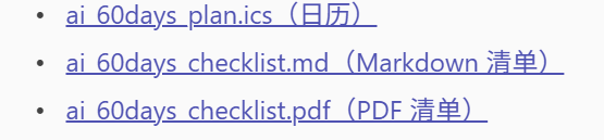 ai_60days_plan.ics→ 指定到你的主日历或新建日历 → 导入完成。