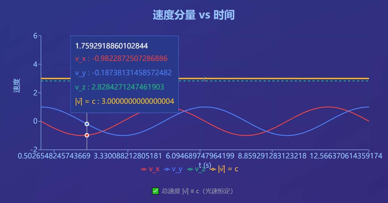 - 总速度: v t 2 + v z 2 = c \sqrt{v_t^2 + v_z^2} = c vt2+vz2 =c(光速)