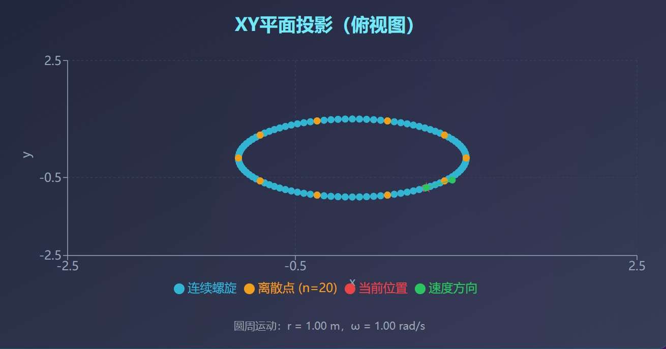 将螺旋运动的水平投影表示为复数: