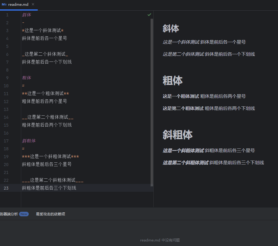 使用一个 * 星号或者 _ 下划线 前后包含一段文本是斜体的语法(*斜体*Space、斜体Space);