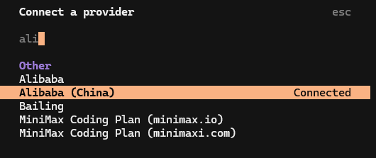 选择 Alibaba China ,然后输入阿里百炼 API KEY