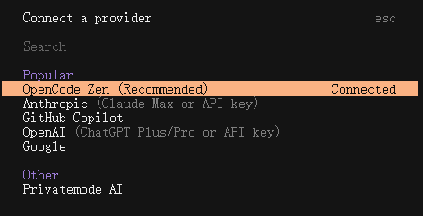 OpenCode 使用AI SDK和Models.dev来支持75 多家大语言模型提供商并支持运行本地模型。