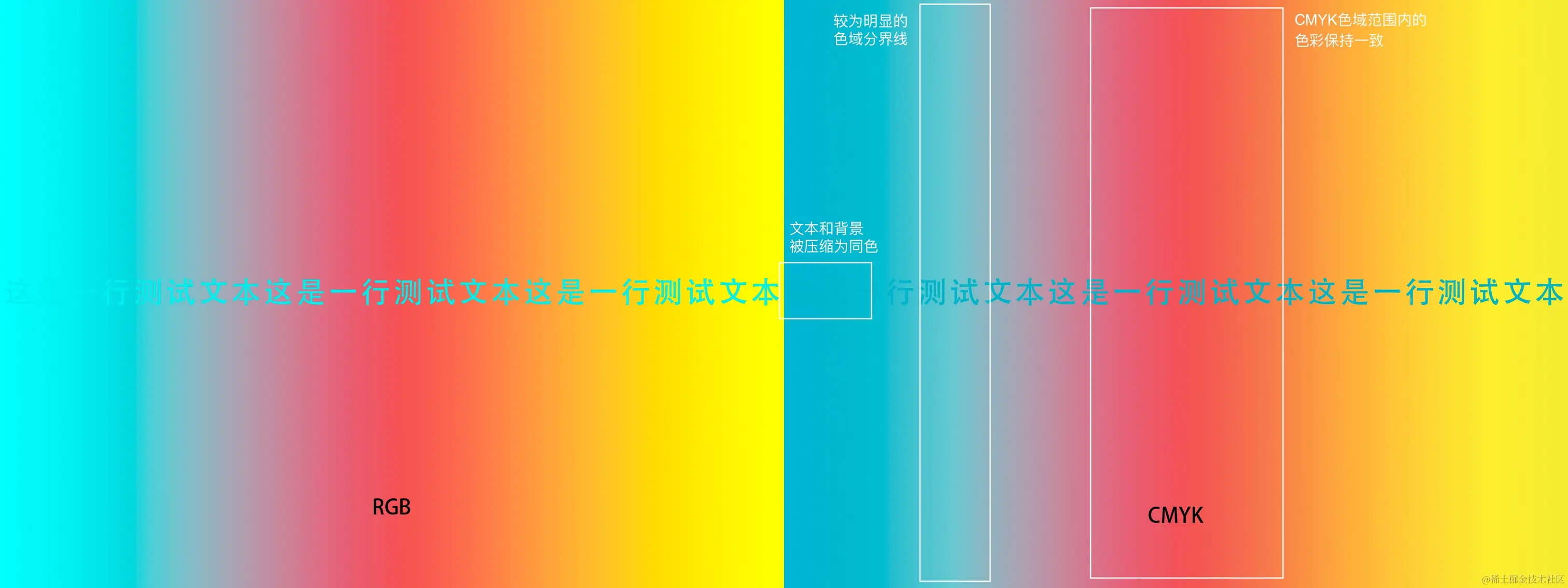 这种算法的思路很朴素:既然 RGB 是加色,CMYK 是减色,那就通过数学关系做个映射。理论上确实可以完成转换,但问题在于------这种纯数学转换完全不考虑现实世界的设备差异。