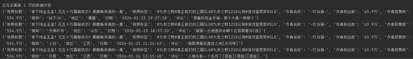 在短视频数据分析场景中,dy评论数据的采集是重要的一环。本文将基于DrissionPage自动化框架,手把手教你实现dy视频评论、作者信息、视频元数据的完整爬取,并将数据结构化存储到CSV文件中。