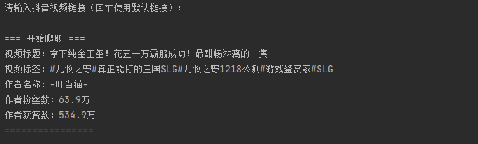 运行代码,输入抖音视频链接(或直接回车使用默认链接);