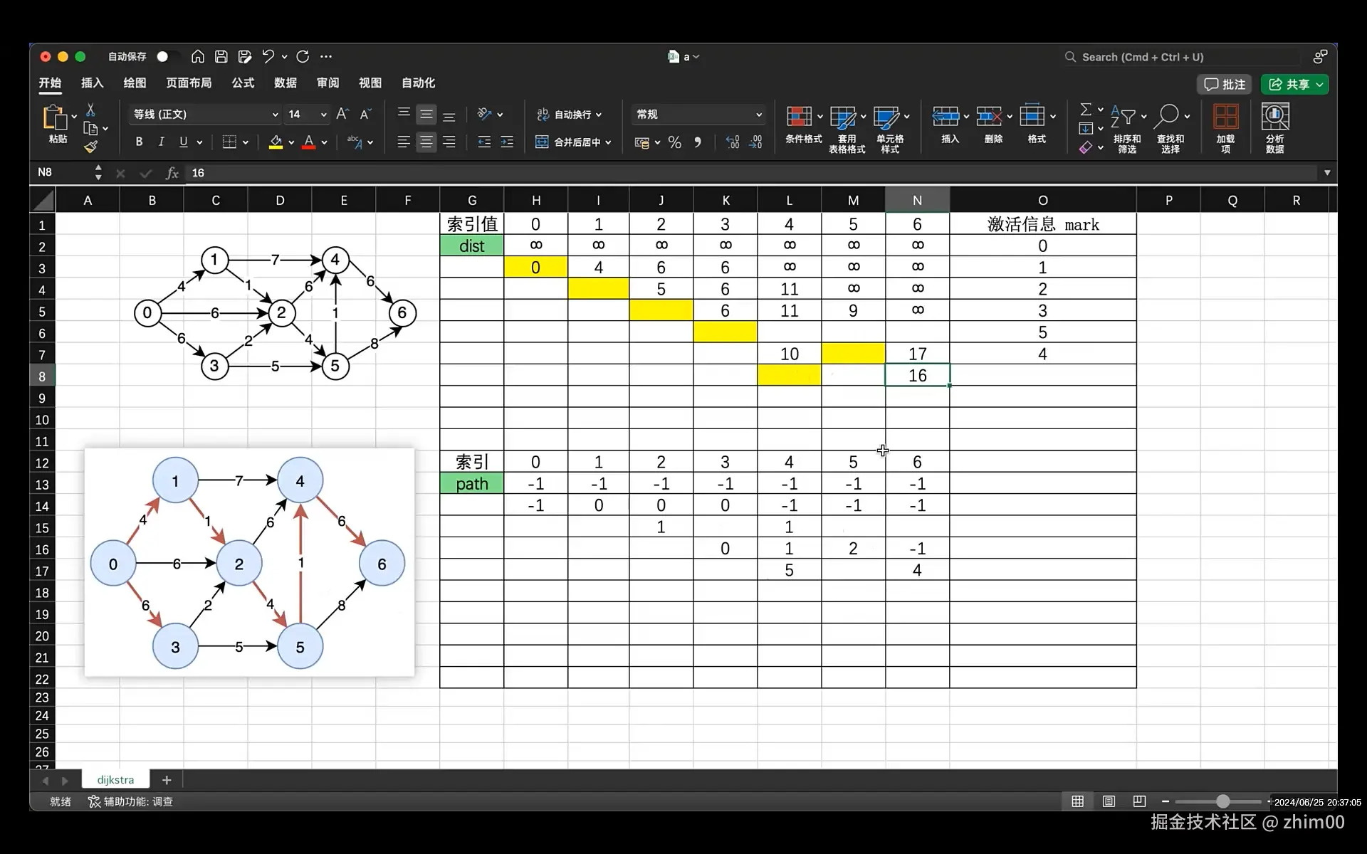 mark[k] = 1; // 激活最小值的那个点