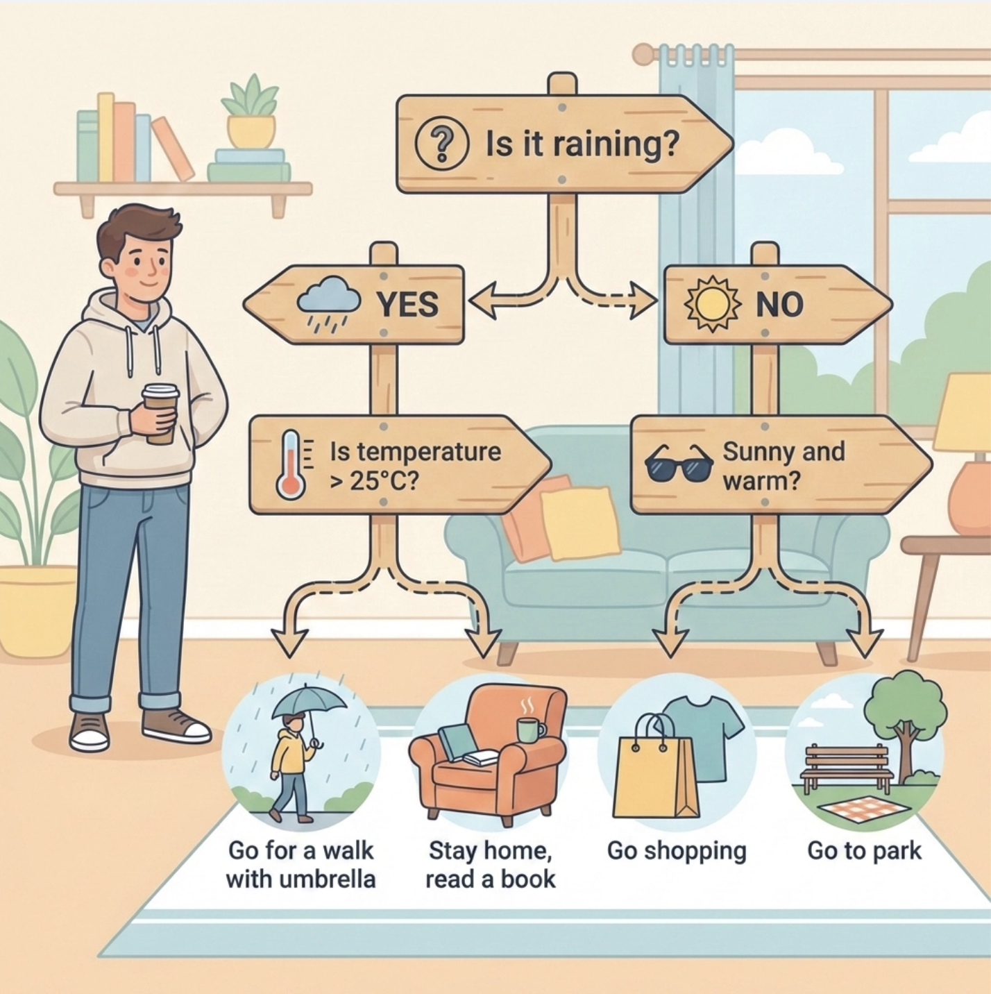 决策树是机器学习中最 "接地气" 的算法之一 ------ 它就像我们日常生活中 "层层追问做选择" 的过程:比如周末要不要出门,先看 "是否下雨",再看 "温度是否超过 25℃",最后决定 "出门逛街" 还是 "宅家追剧"。这篇文章结合《机器学习导论》第 9 章内容,用通俗易懂的语言拆解决策树核心知识点,搭配完整可运行的 Python 代码 和直观的可视化对比图,帮你彻底搞懂决策树从原理到落地的全过程。