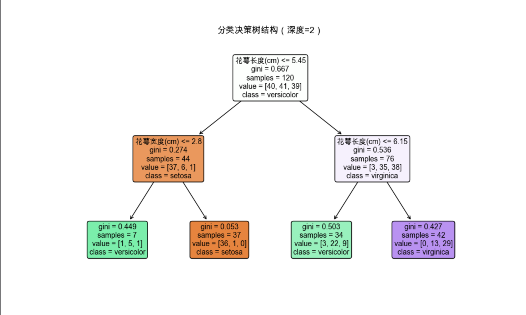 print(f"深度为2的决策树测试集准确率:{acc_depth2:.2f}")