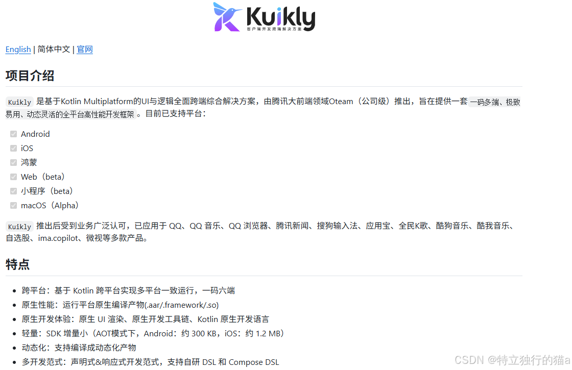 README文档 :https://github.com/Tencent-TDS/KuiklyUI/blob/main/README-zh_CN.md