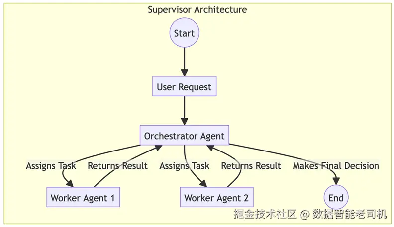 | 主要架构 | Supervisor架构:中心编排智能体主导工作流。 | Swarm或Hybrid:智能体以P2P网络或自组织团队运行。 |