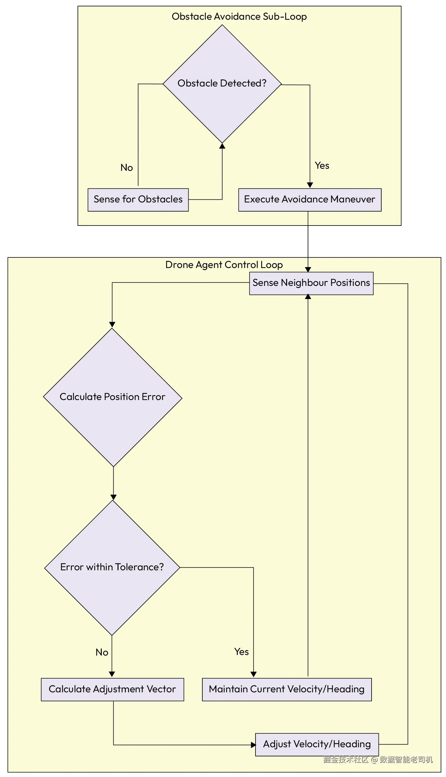 对于队形中的任意单个智能体,其核心逻辑循环可用下图表示: