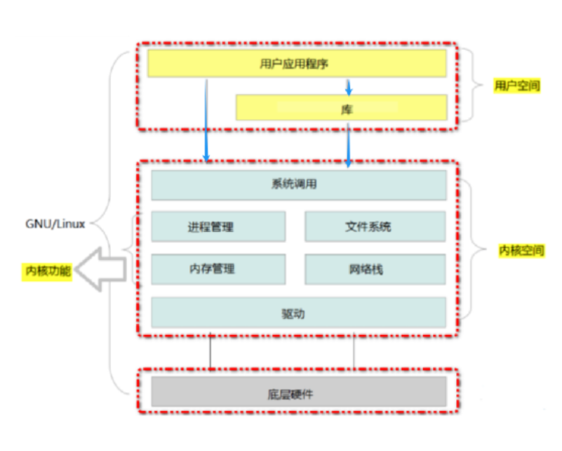 linux本质上是个软件,linux系统分了内核空间和用户空间,如果要使用到linux系统的功能需要通过系统调用来使用到,系统调用就是指linux系统本身提供的函数