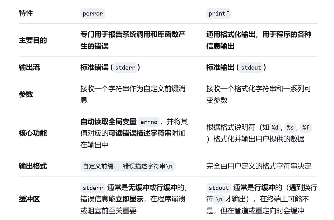 这里介绍一下perror和printf的区别: