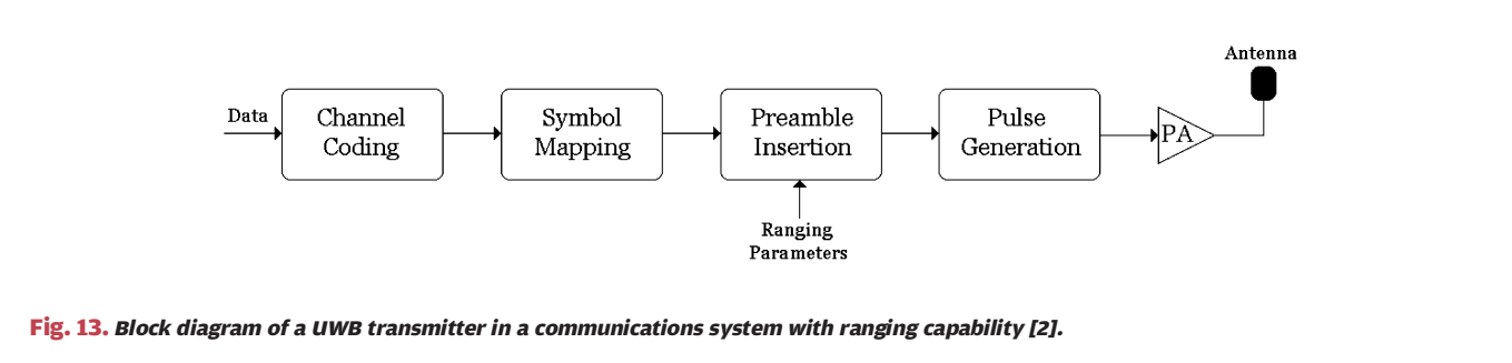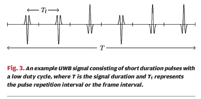 论文将关注点放在 impulse radio UWB:用极短脉冲、很低的 duty cycle 传输,信息可由脉冲的时序或极性承载;对定位系统而言,核心任务是估计这些脉冲(或其前导结构)的 TOA/TDOA。