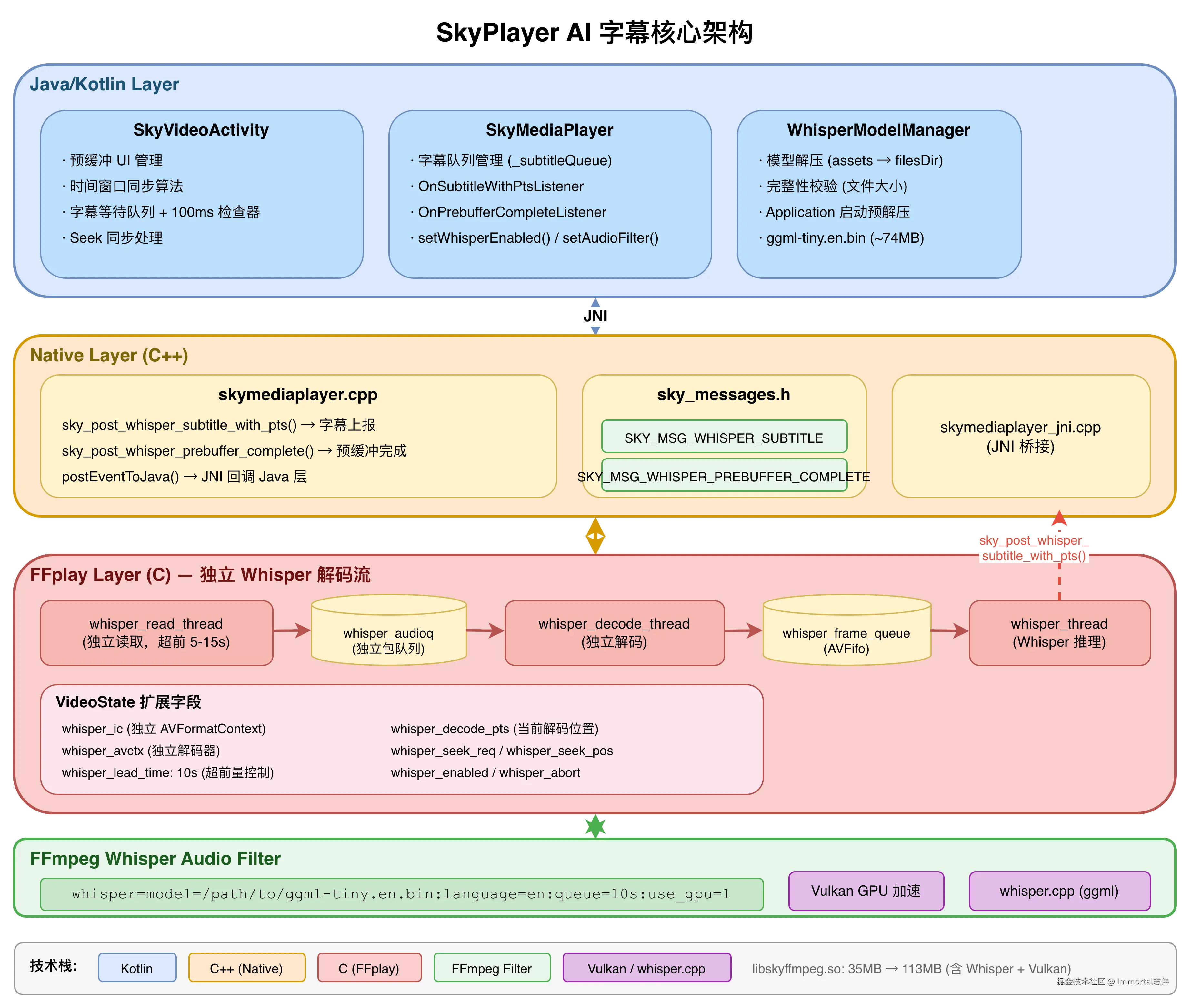 本次分享介绍 SkyPlayer 如何在 Android 端集成 OpenAI Whisper 语音识别模型,实现实时 AI 字幕功能------无需服务端、无需网络,纯端侧推理,从音频解码到字幕展示的完整链路。