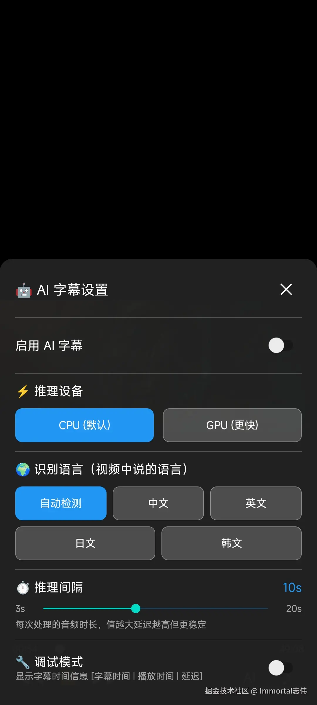 | 🤖 AI 字幕开关 | Switch | 开启/关闭 Whisper |