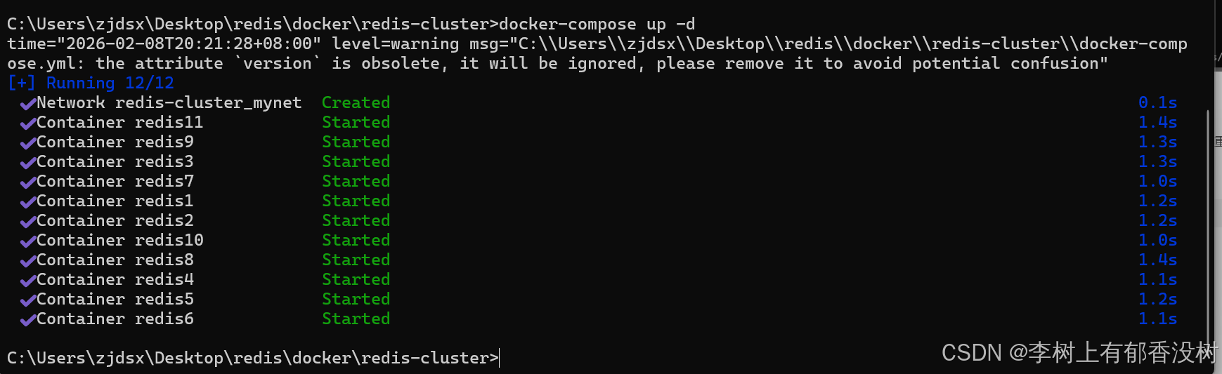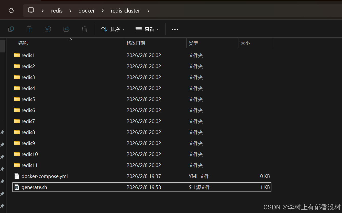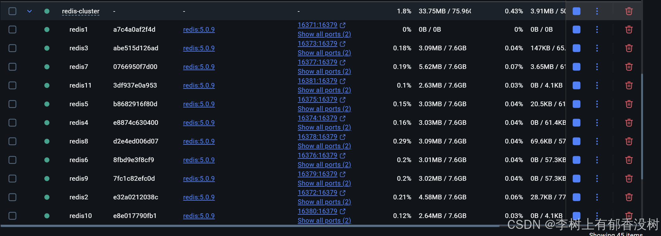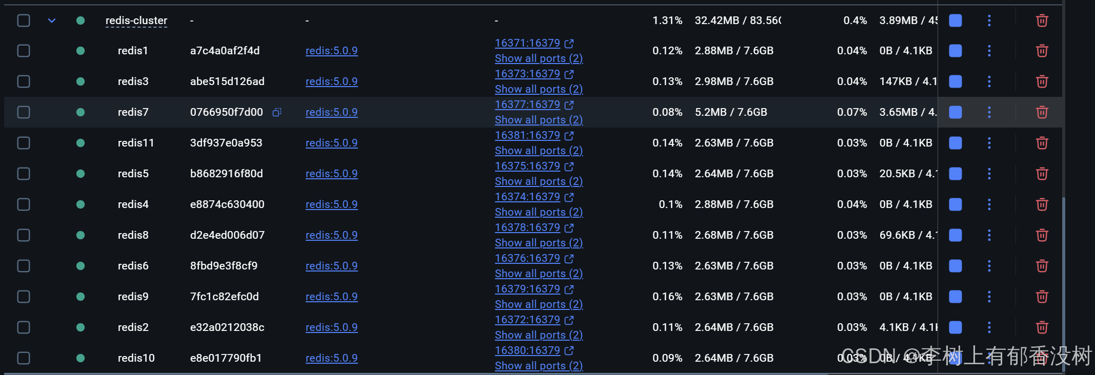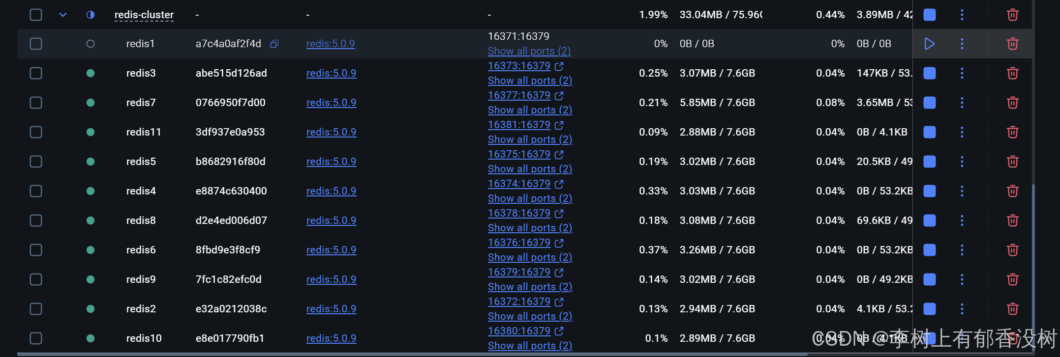 此处我们先创建出 11 个 redis 节点. 其中前 9 个⽤来演⽰集群的搭建.