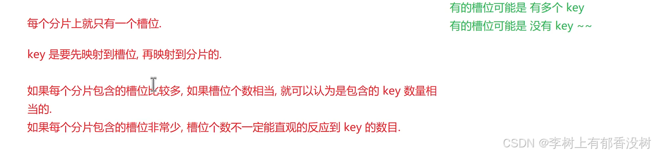 并⾮如此. 如果⼀个分⽚只有⼀个槽位, 这对于集群的数据均匀其实是难以保证的.