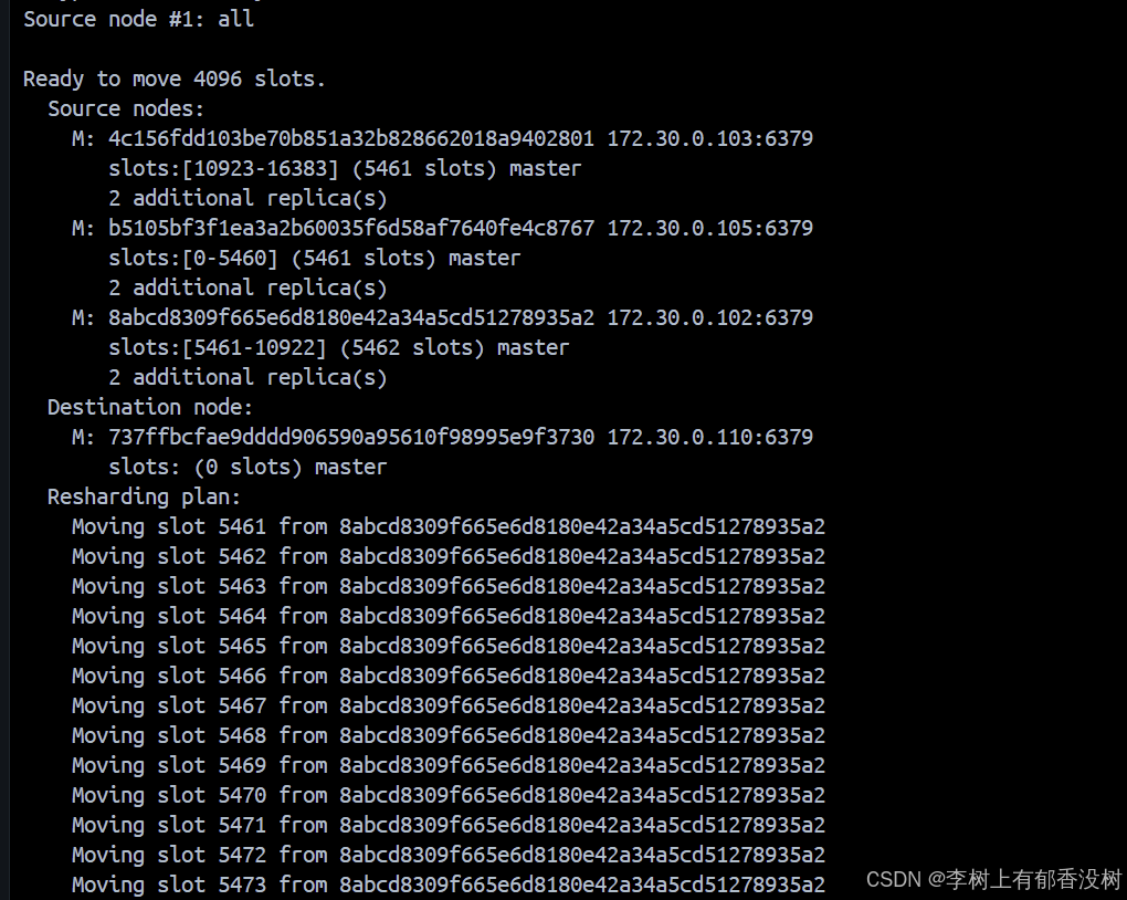 注意!! 此时要删除的主节点, 包含 4096 个 slots. 我们把 110 这个注解上的这 4096 个 slots
