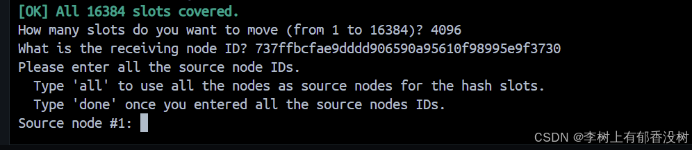 4 Type 'all' to use all the nodes as source nodes for the hash slots.