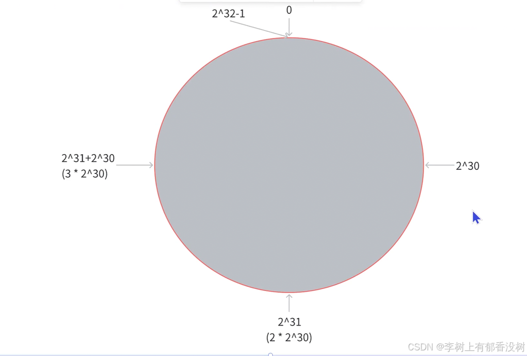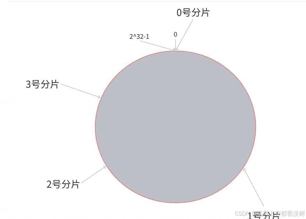 第⼀步, 把 0 -> 2^32-1 这个数据空间, 映射到⼀个圆环上. 数据按照顺时针⽅向增⻓.