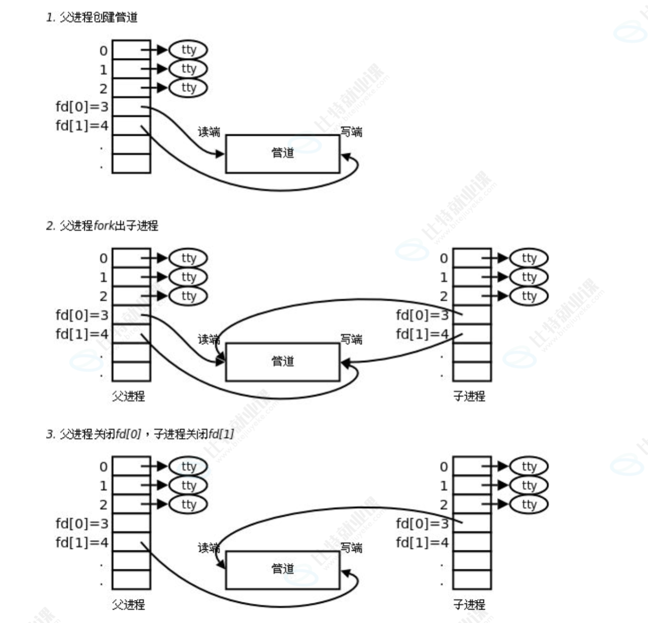 - 管道里没有"消息边界"。子进程写了 "Hello" "World",管道里就是 "HelloWorld"。