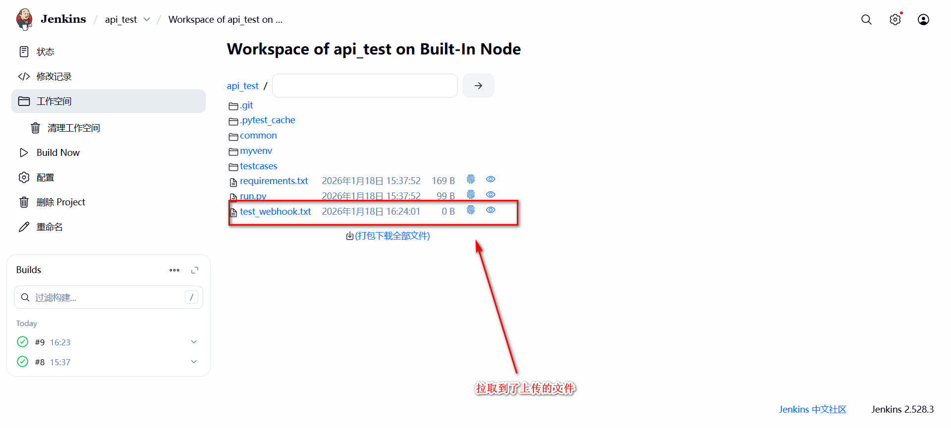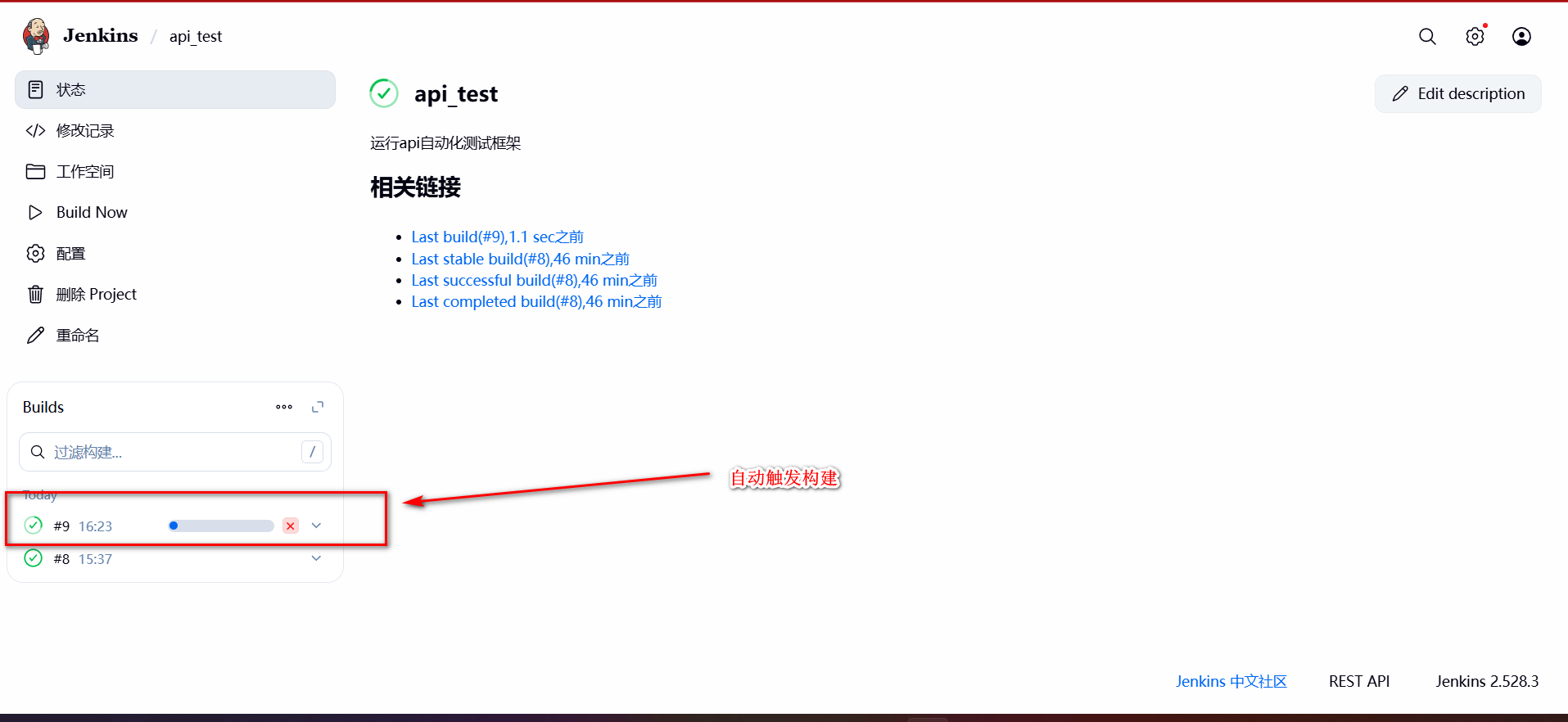 测试:去更新Gogs仓库的代码,会自动触发Jenkins的构建运行
