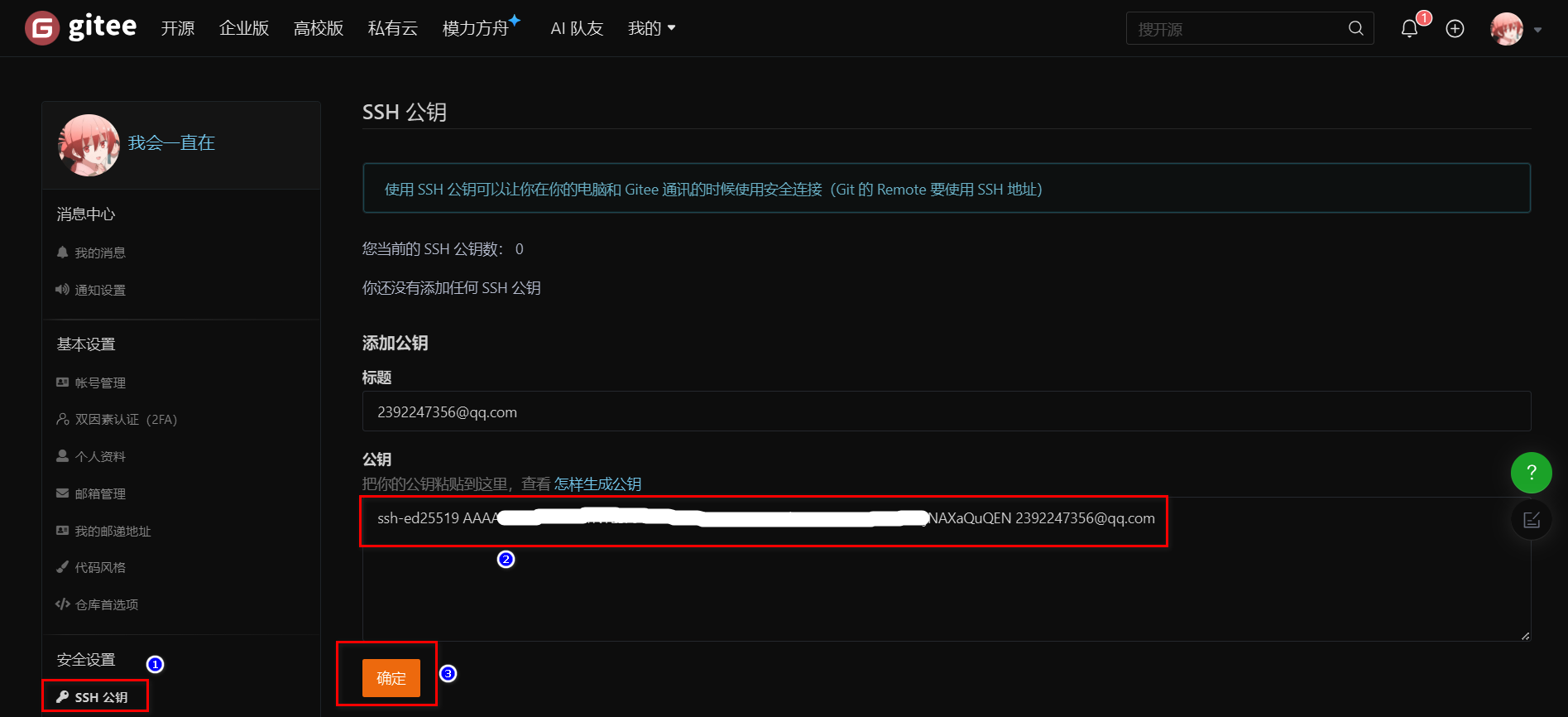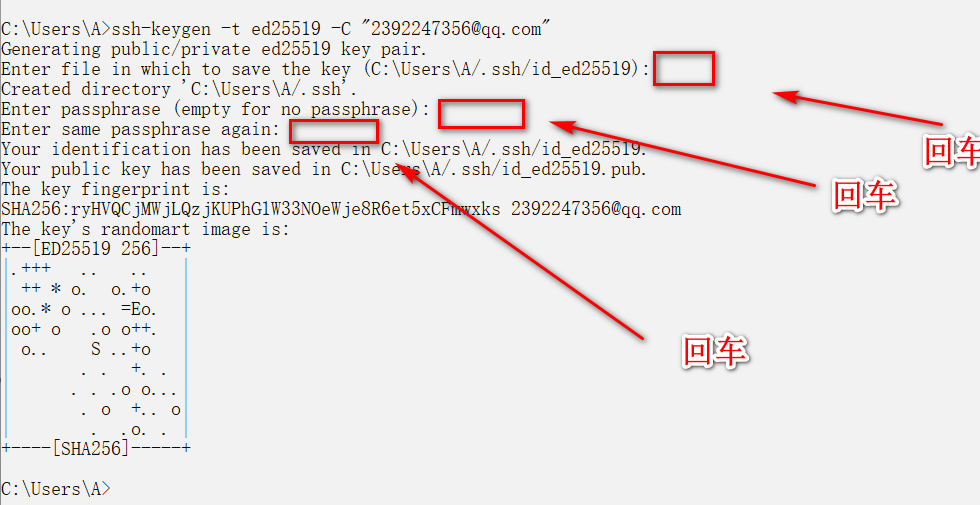 ssh-keygen -t ed25519 -C "2392247356@qq.com"