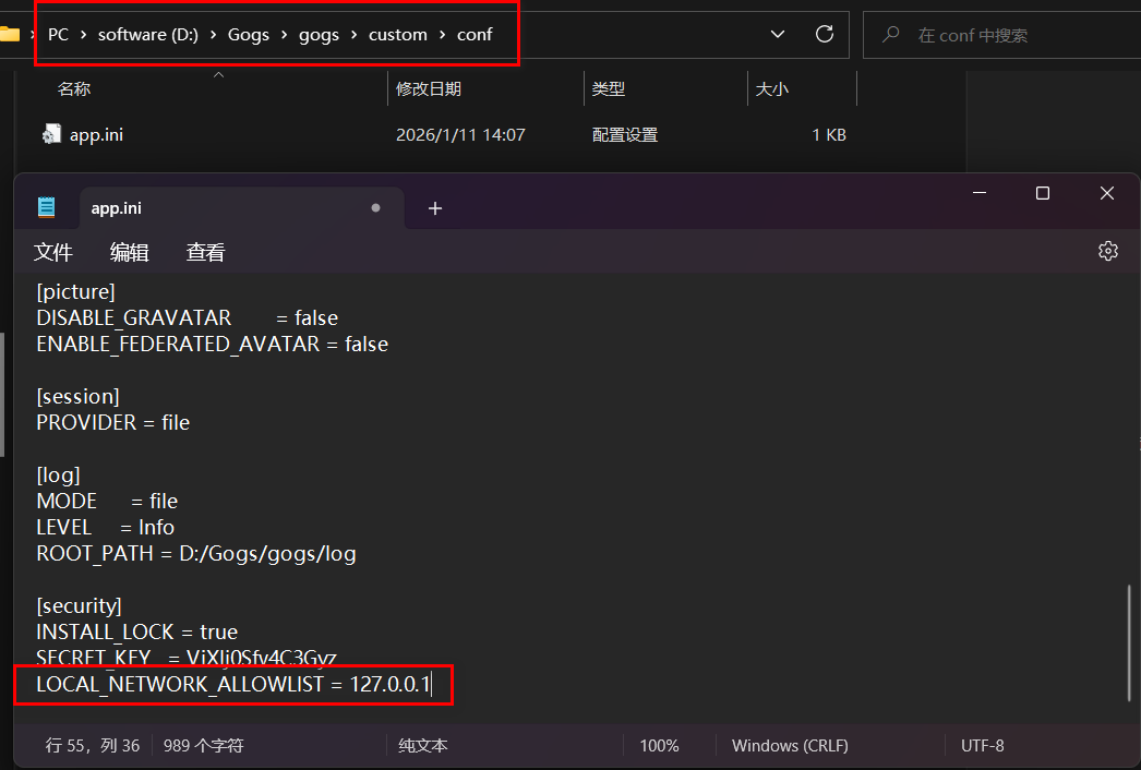 app.ini最后添加:LOCAL_NETWORK_ALLOWLIST = 127.0.0.1