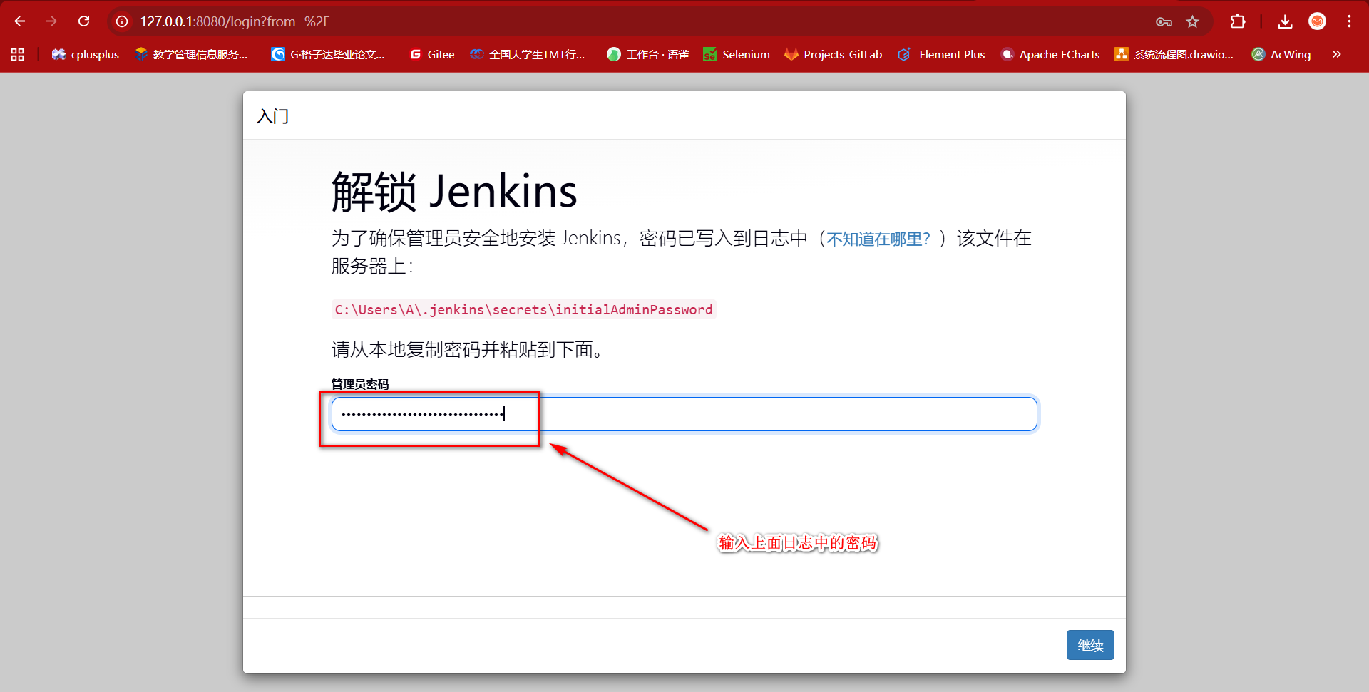打开浏览器访问Jenkins:127.0.0.1:8080