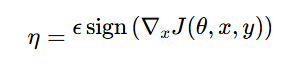 其中,ϵ是一个小的常数,∇xJ(θ,x,y)是成本函数关于输入 x的梯度。