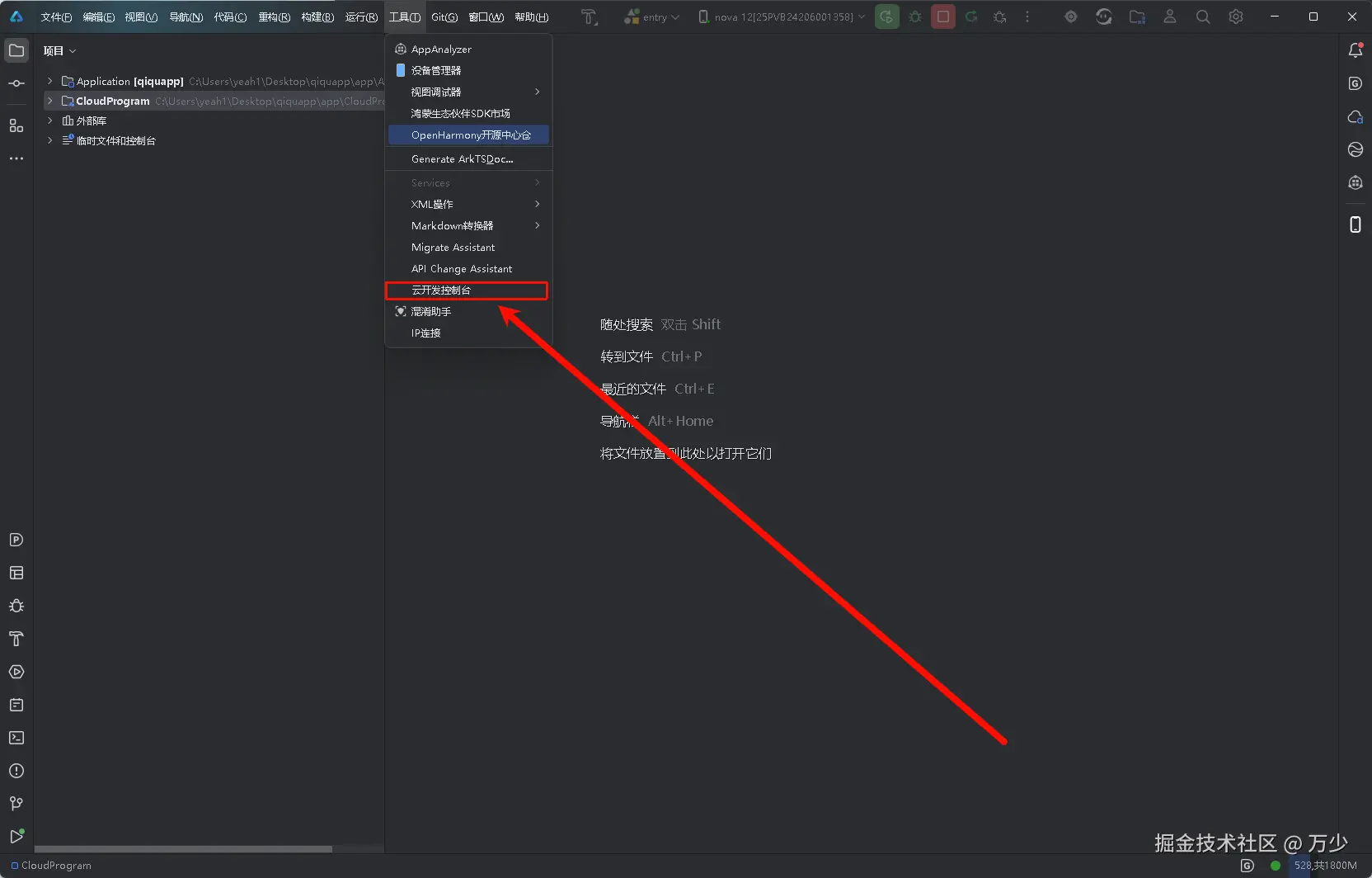 其中关于云端的调试,DevEco Studio中也提供了调试面板