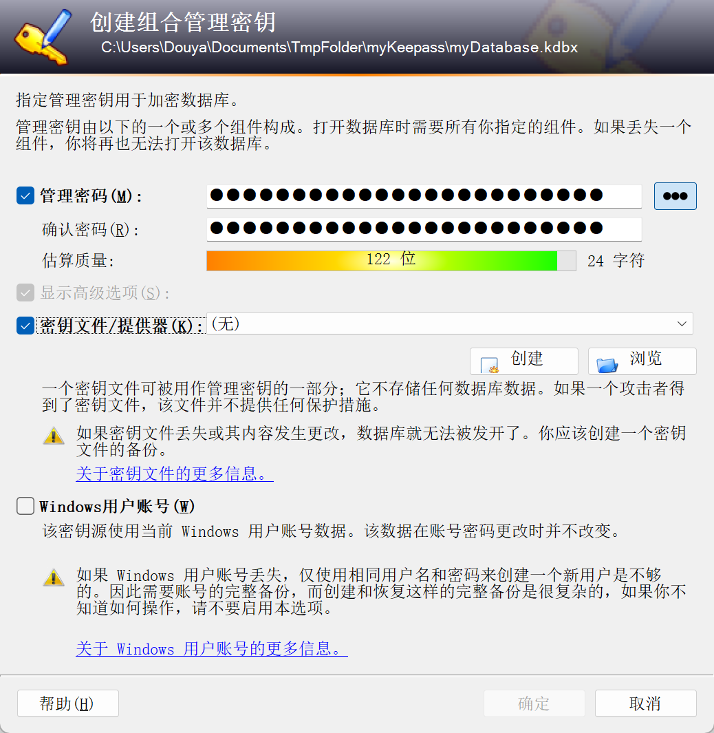 - 👉密钥文件建议不要与Keepass的数据库文档放在同一位置或者关联位置